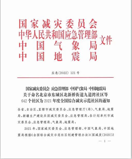 ▲“全国综合减灾示范社区”公示